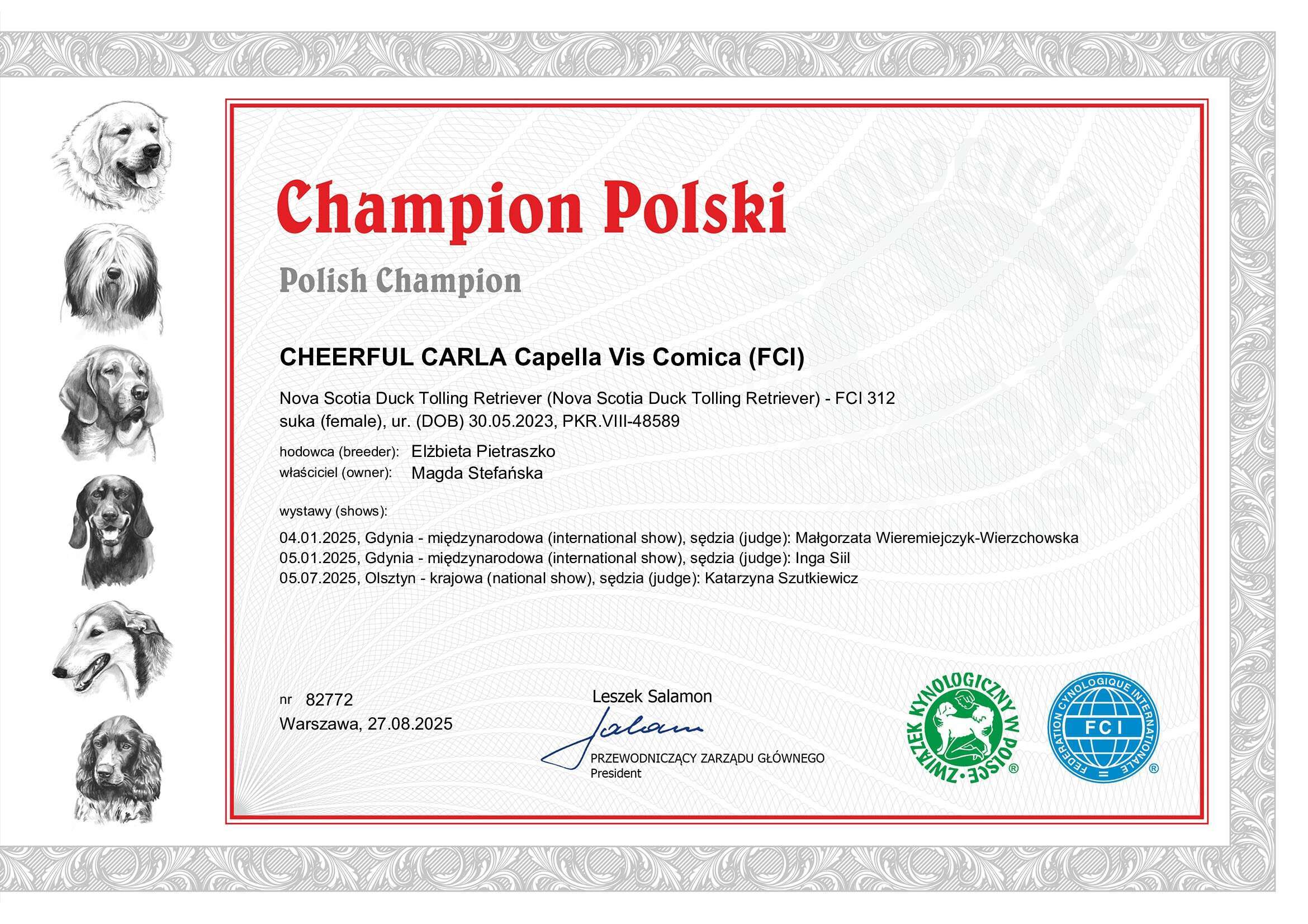 Hodowla przynależy do sopockiego oddziału Związku Kynologicznego w Polsce.